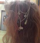A custom-made hair accessory with silver plated chain and wire wrapped abalone pieces