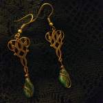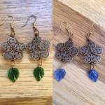 I made two more pairs of filigree flower earrings, this time with glass leaf beads. Now for sale in my Etsy shop!